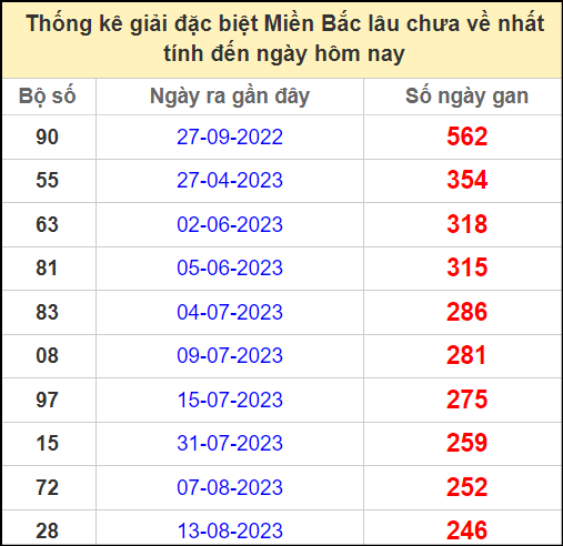 ⚡ Thống kê gan giải đặc biệt lâu về nhất hôm nay: 90 – 55 – 63 – 81 – 08