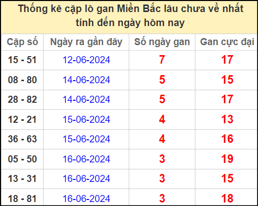 ⚡ Thống kê cặp số lâu chưa ra: 15 – 51, 08 – 80, 28 – 82
