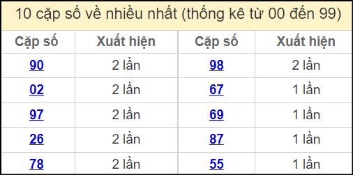 Những con số thống kê mới nhất trong 30 lần mở thưởng gần nhất, soi cầu lô đề miền Bắc (thống kê lô chơi nhiều nhất trong ngày, chu kỳ giải đặc biệt, thống kê lô gan, thống kê các bộ số xuất hiện ít nhất, tần suất lô) để bạn có thể chốt số. Từ những thống kê này người chơi sẽ có được kết quả soi cầu dự đoán giải đặc biệt ngày mai và lựa chọn ra đúng kết quả hôm nay ngày 20/6/2024.