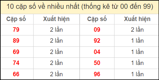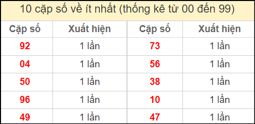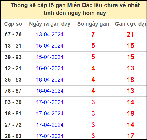 ⚡ Thống kê cặp số lâu chưa ra: 67 – 76, 13 – 31, 39 – 93