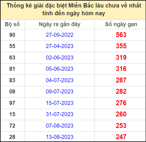 ⚡ Thống kê gan giải đặc biệt lâu về nhất hôm nay: 90 – 55 – 63 – 81 – 83