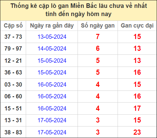 ⚡ Thống kê cặp số lâu chưa ra: 37 – 73, 79 – 97, 12 – 21