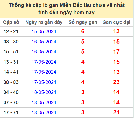Những con số thống kê mới nhất trong 30 lần mở thưởng gần nhất, soi cầu lô đề miền Bắc (thống kê lô chơi nhiều nhất trong ngày, chu kỳ giải đặc biệt, thống kê lô gan, thống kê các bộ số xuất hiện ít nhất, tần suất lô) để bạn có thể chốt số. Từ những thống kê này người chơi sẽ có được kết quả soi cầu dự đoán giải đặc biệt ngày mai và lựa chọn ra đúng kết quả hôm nay ngày 22/5/2024.