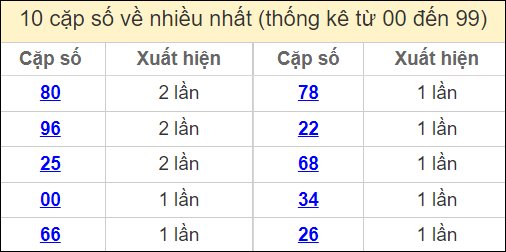 ⚡ Thống kê cặp số lâu chưa ra: undefined