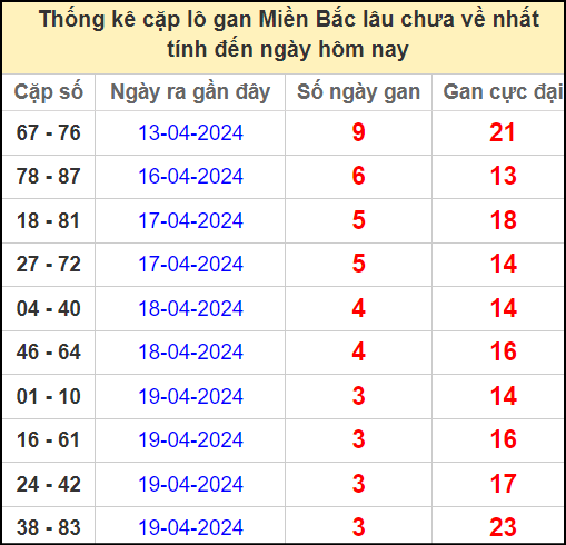 Những con số thống kê mới nhất trong 30 lần mở thưởng gần nhất, soi cầu lô đề miền Bắc (thống kê lô chơi nhiều nhất trong ngày, chu kỳ giải đặc biệt, thống kê lô gan, thống kê các bộ số xuất hiện ít nhất, tần suất lô) để bạn có thể chốt số. Từ những thống kê này người chơi sẽ có được kết quả soi cầu dự đoán giải đặc biệt ngày mai và lựa chọn ra đúng kết quả hôm nay ngày 23/4/2024.