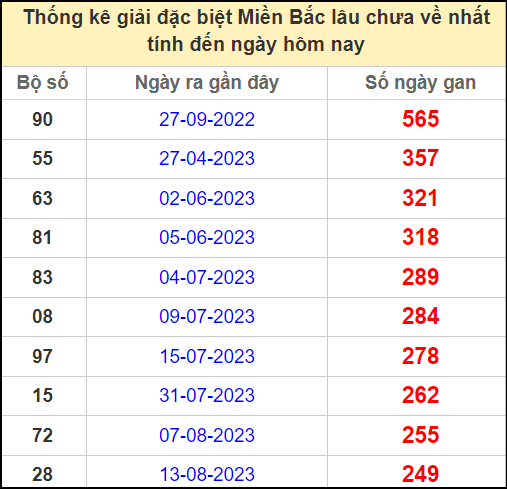 ⚡ Thống kê gan giải đặc biệt lâu về nhất hôm nay: 90 – 55 – 63 – 81 – 83