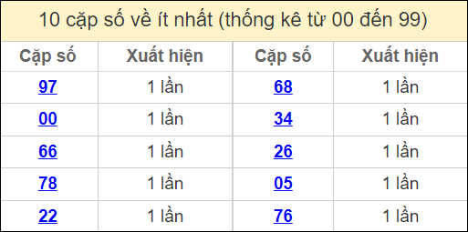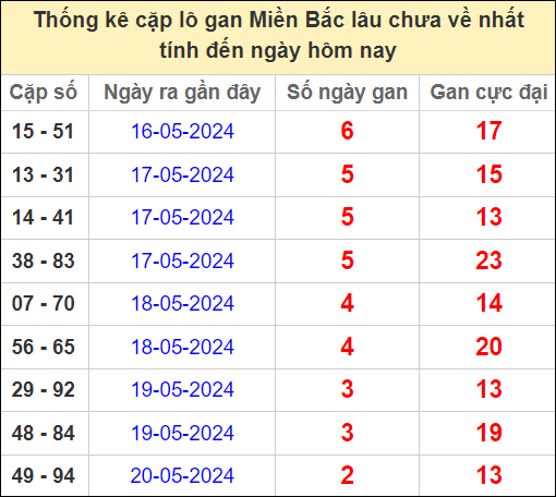 ⚡ Thống kê cặp số lâu chưa ra: 15 – 51, 13 – 31, 14 – 41