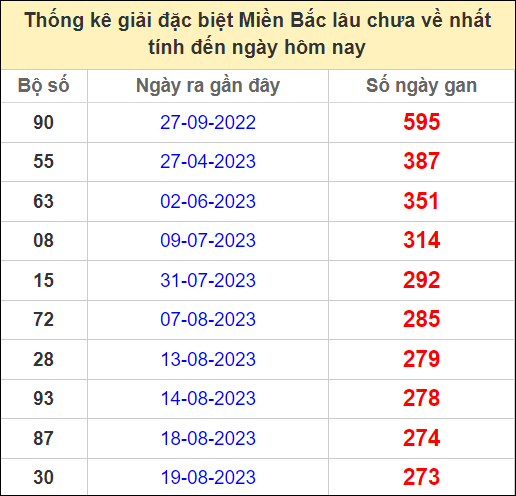 ⚡ Thống kê gan giải đặc biệt lâu về nhất hôm nay: 55