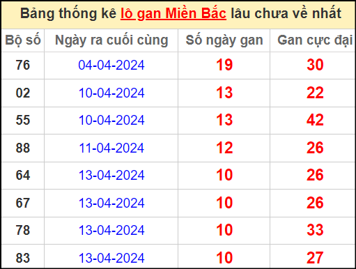 ⚡ Thống kê lô khan lâu chưa về: 76 – 02 – 55 – 88 – 64