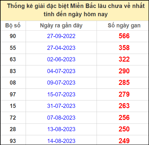 ⚡ Thống kê gan giải đặc biệt lâu về nhất hôm nay: 90 – 55 – 63 – 83 – 08