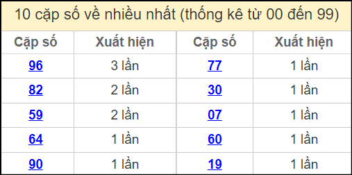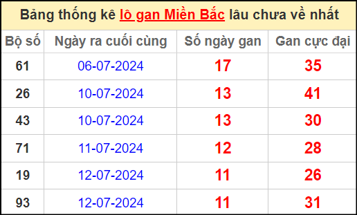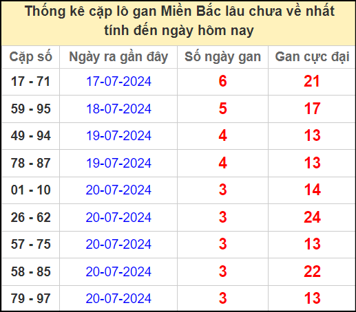 Những con số thống kê mới nhất trong 30 lần mở thưởng gần nhất, soi cầu lô đề miền Bắc (thống kê lô chơi nhiều nhất trong ngày, chu kỳ giải đặc biệt, thống kê lô gan, thống kê các bộ số xuất hiện ít nhất, tần suất lô) để bạn có thể chốt số. Từ những thống kê này người chơi sẽ có được kết quả soi cầu dự đoán giải đặc biệt ngày mai và lựa chọn ra đúng kết quả hôm nay ngày 24/7/2024.