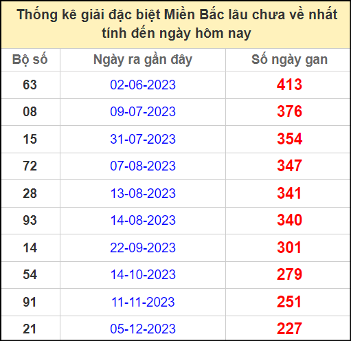 ⚡ Thống kê gan giải đặc biệt lâu về nhất hôm nay: 56