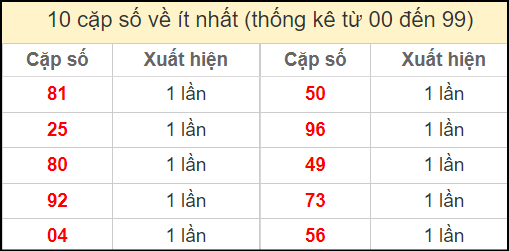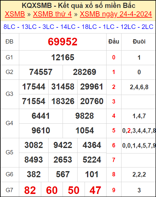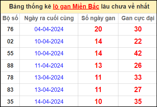 Những con số thống kê mới nhất trong 30 lần mở thưởng gần nhất, soi cầu lô đề miền Bắc (thống kê lô chơi nhiều nhất trong ngày, chu kỳ giải đặc biệt, thống kê lô gan, thống kê các bộ số xuất hiện ít nhất, tần suất lô) để bạn có thể chốt số. Từ những thống kê này người chơi sẽ có được kết quả soi cầu dự đoán giải đặc biệt ngày mai và lựa chọn ra đúng kết quả hôm nay ngày 25/4/2024.