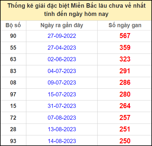 ⚡ Thống kê gan giải đặc biệt lâu về nhất hôm nay: 90 – 55 – 63 – 83 – 08