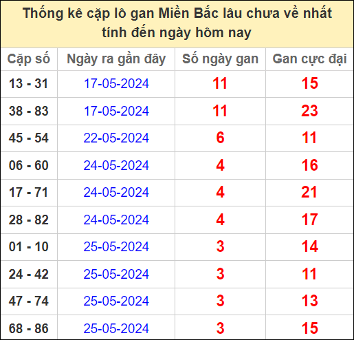 ⚡ Thống kê cặp số lâu chưa ra: 23