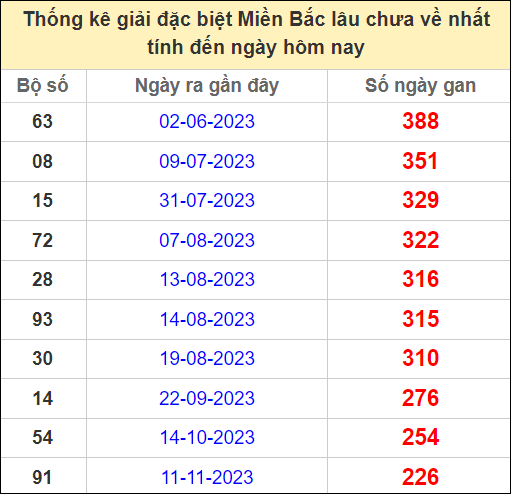 ⚡ Thống kê gan giải đặc biệt lâu về nhất hôm nay: 63 – 08 – 15 – 72 – 28