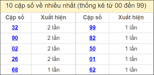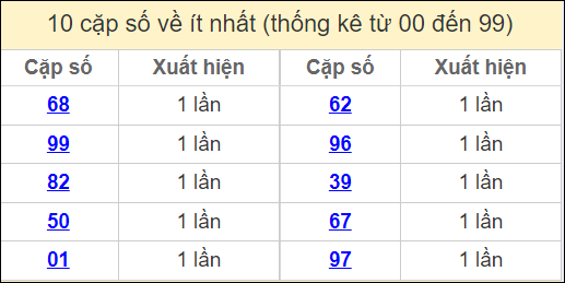 ⚡ Thống kê cặp số lâu chưa ra: 58 – 85, 60 – 06, 39 – 93