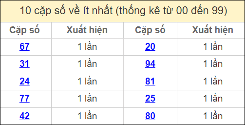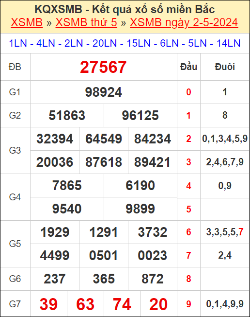 Những con số thống kê mới nhất trong 30 lần mở thưởng gần nhất, soi cầu lô đề miền Bắc (thống kê lô chơi nhiều nhất trong ngày, chu kỳ giải đặc biệt, thống kê lô gan, thống kê các bộ số xuất hiện ít nhất, tần suất lô) để bạn có thể chốt số. Từ những thống kê này người chơi sẽ có được kết quả soi cầu dự đoán giải đặc biệt ngày mai và lựa chọn ra đúng kết quả hôm nay ngày 3/5/2024.