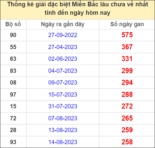 ⚡ Thống kê gan giải đặc biệt lâu về nhất hôm nay: 90 – 55 – 63 – 83 – 08