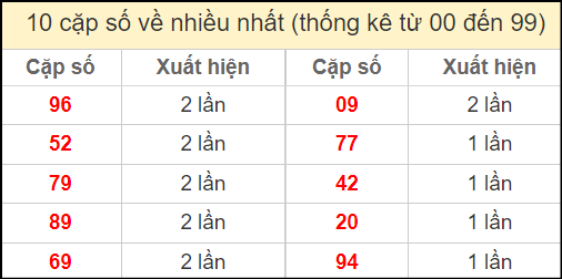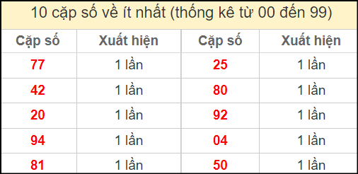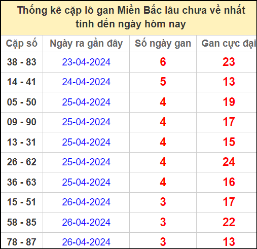 ⚡ Thống kê cặp số lâu chưa ra: 38 – 83, 14 – 41, 05 – 50