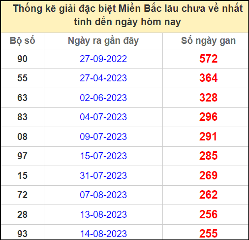 ⚡ Thống kê gan giải đặc biệt lâu về nhất hôm nay: 90 – 55 – 63 – 83 – 08