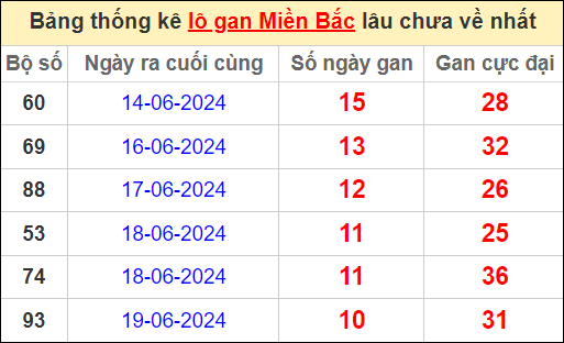 Thống kê lô gan miền Bắc lâu chưa về nhất 30/6/2024