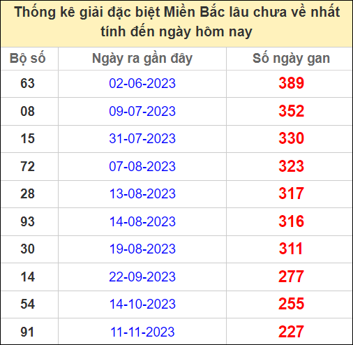 ⚡ Thống kê gan giải đặc biệt lâu về nhất hôm nay: 63 – 08 – 15 – 72 – 28