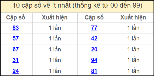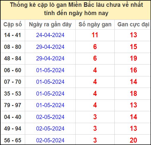 ⚡ Thống kê cặp số lâu chưa ra: 14 – 41, 08 – 80, 48 – 84