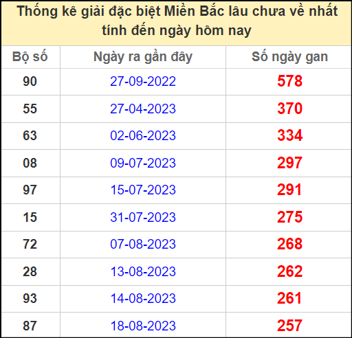 ⚡ Thống kê gan giải đặc biệt lâu về nhất hôm nay: 90 – 55 – 63 – 08 – 97