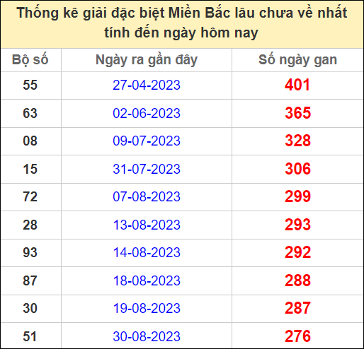 Thống kê gan giải đặc biệt miền Bắc lâu chưa về 6/6/2024