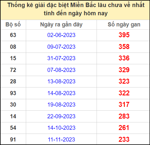 ⚡ Thống kê gan giải đặc biệt lâu về nhất hôm nay: 63 – 08 – 15 – 72 – 28