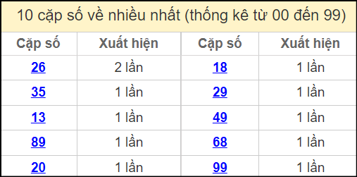 Những con số thống kê mới nhất trong 30 lần mở thưởng gần nhất, soi cầu lô đề miền Bắc (thống kê lô chơi nhiều nhất trong ngày, chu kỳ giải đặc biệt, thống kê lô gan, thống kê các bộ số xuất hiện ít nhất, tần suất lô) để bạn có thể chốt số. Từ những thống kê này người chơi sẽ có được kết quả soi cầu dự đoán giải đặc biệt ngày mai và lựa chọn ra đúng kết quả hôm nay ngày 6/7/2024.