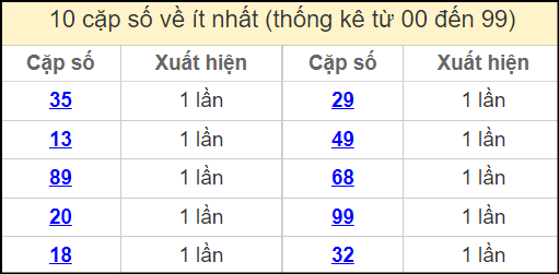 ⚡ Thống kê cặp số lâu chưa ra: 04 – 40, 45 – 54, 48 – 84
