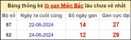 Thống kê lô gan miền Bắc lâu chưa về nhất 7/7/2024