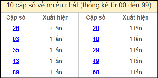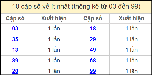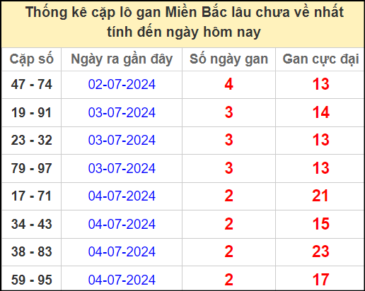 Thống kê lô cặp miền Bắc lâu chưa về 7/7/2024