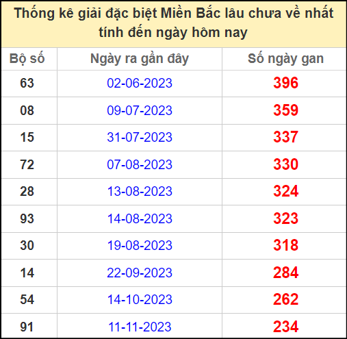 ⚡ Thống kê gan giải đặc biệt lâu về nhất hôm nay: 63 – 08 – 15 – 72 – 28
