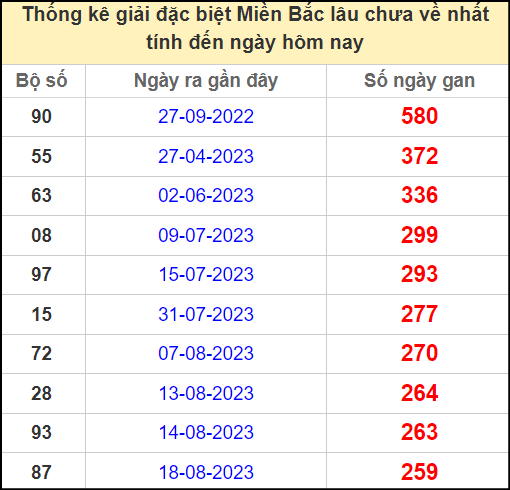 ⚡ Thống kê gan giải đặc biệt lâu về nhất hôm nay: 90 – 55 – 63 – 08 – 97