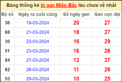 ⚡ Thống kê lô khan lâu chưa về: 36 – 68 – 30 – 51 – 84