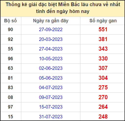 ⚡ Thống kê gan giải đặc biệt lâu về nhất hôm nay: 90 – 92 – 55 – 96 – 63