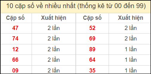 ⚡ Thống kê cặp số lâu chưa ra: 14 – 41, 26 – 62, 35 – 53